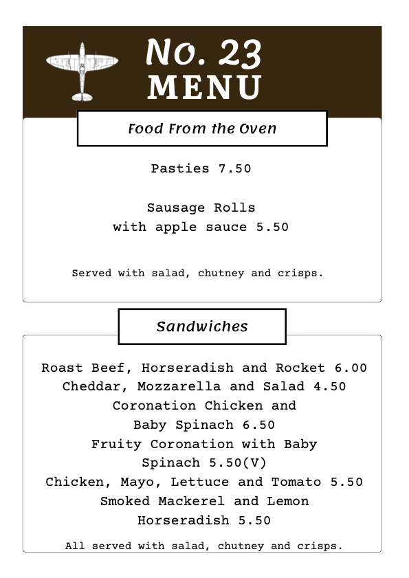Welcome to No.23 at The Airfield, a little coffee shop that can be found in the middle of the clubhouse at Henstridge Airfield. This airfield was originally built in WW2 to train Seafire Pilots and was then known as HMS Dipper. Now it’s a busy airfield for general aviation and home to the Dorset and Somerset Air Ambulance.
